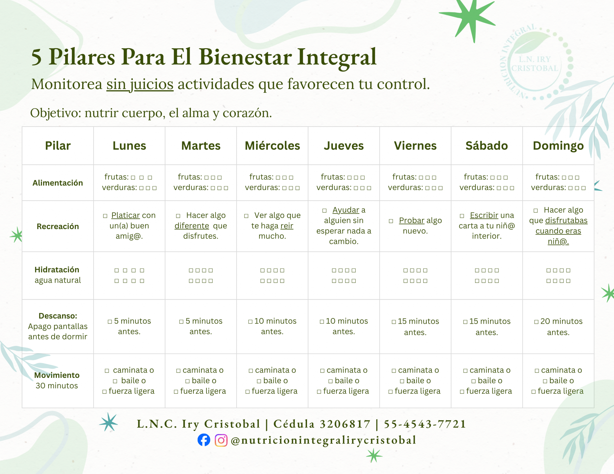 Guía Mensual para construir Hábitos Saludables para tener claridad a cada uno de su días.